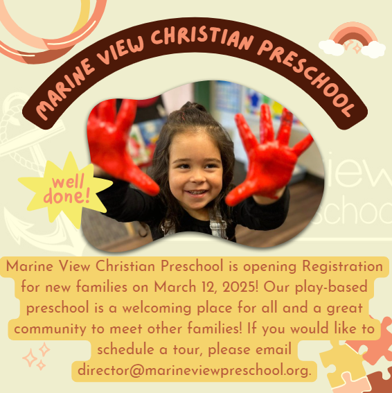 Marine View has become the most important place for our family. The teachers are so kind and open hearted. Everything from registration, drop offs, lunch bunch sign ups and parent-teacher communication is simple and easy. The holiday celebrations, weekly collection of artwork that comes home, and Christmas and end of the year events are all just snapshots of the incredible time I know my children have the days they attend school. Every month they come home singing a new song from Chapel, or telling us a great story they learned at school or something exciting that happened with their friends. Not only has it set up my daughter for an incredible launch into her Kindergarten education next year, but she has made so many friends in the community, as have I with other parents! I will always cherish my girls' start at Marine View, and that I get to be a Marine View parent for 5 years!